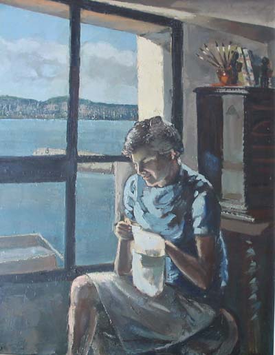 Tere, la esposa, pintada en el estudio de Cimadevilla, en la calle Castro Romano, en el año 1965. |