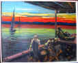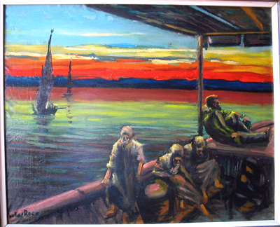 Oleo de la puesta de sol en el Nilo. Es la barcaza que cruzaba el río, desde