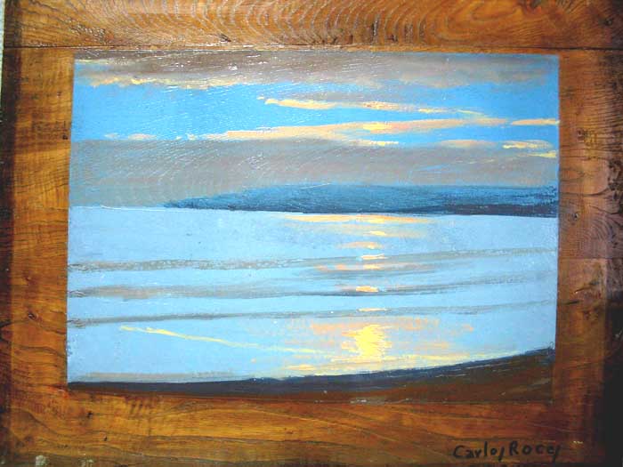 Reflejos al amanecer | cuadro de playa, sobre una tabla | Reflejos sobre la playa |