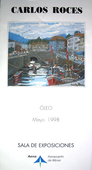 Cuadro pintado en el Muelle de Gijón, desde el balcón de la "Obra Social y Cultural Sopeña", donde Carlos Roces era profesor de pintura | ||