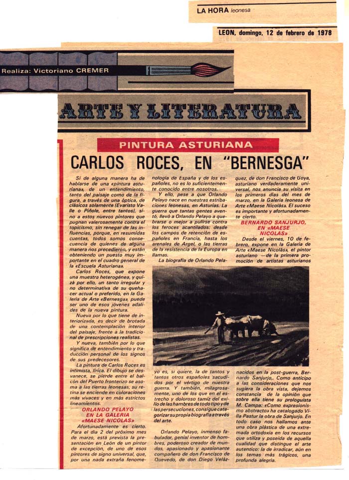 comentarios sobre la exposición de los pintores Carlos Roces, Orlando
